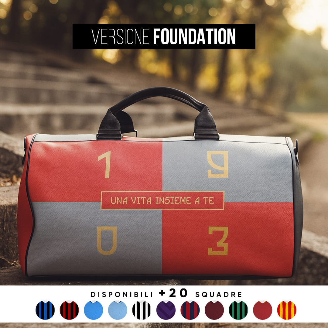 Borsone PREMIUM in similpelle 100% Made in Italy. Interamente realizzato e stampato in Italia, unisce qualità artigianale e design esclusivo. Dotato di tracolla regolabile e ampio spazio interno, è ideale per i tifosi che vogliono portare con sé la propria passione con stile e praticità. Un accessorio raffinato e resistente, perfetto per ogni occasione. Le dimensioni sono circa 47x27x30cm